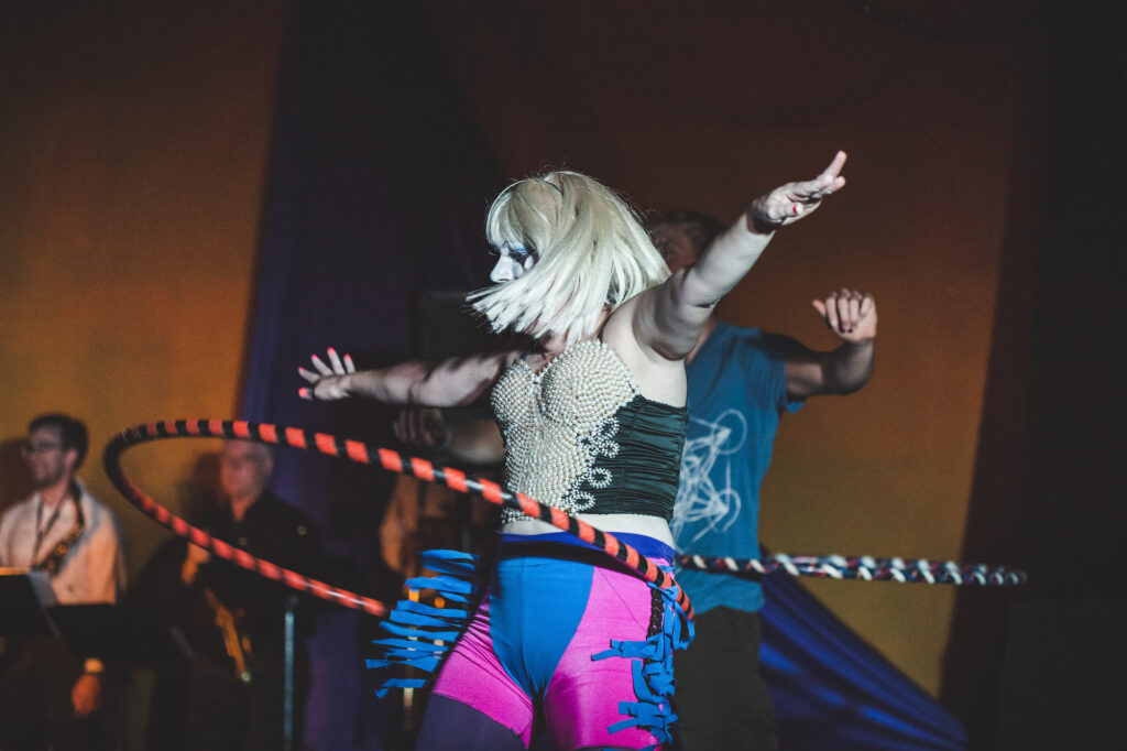 Elle also performs burlesque, hooping, chair acrobatics, and clowning. Known for her whimsical movement that hearkens back to classic vaudeville and German-style cabaret, she brings an audacious artistry to stage shows, themed parties, and festivals.